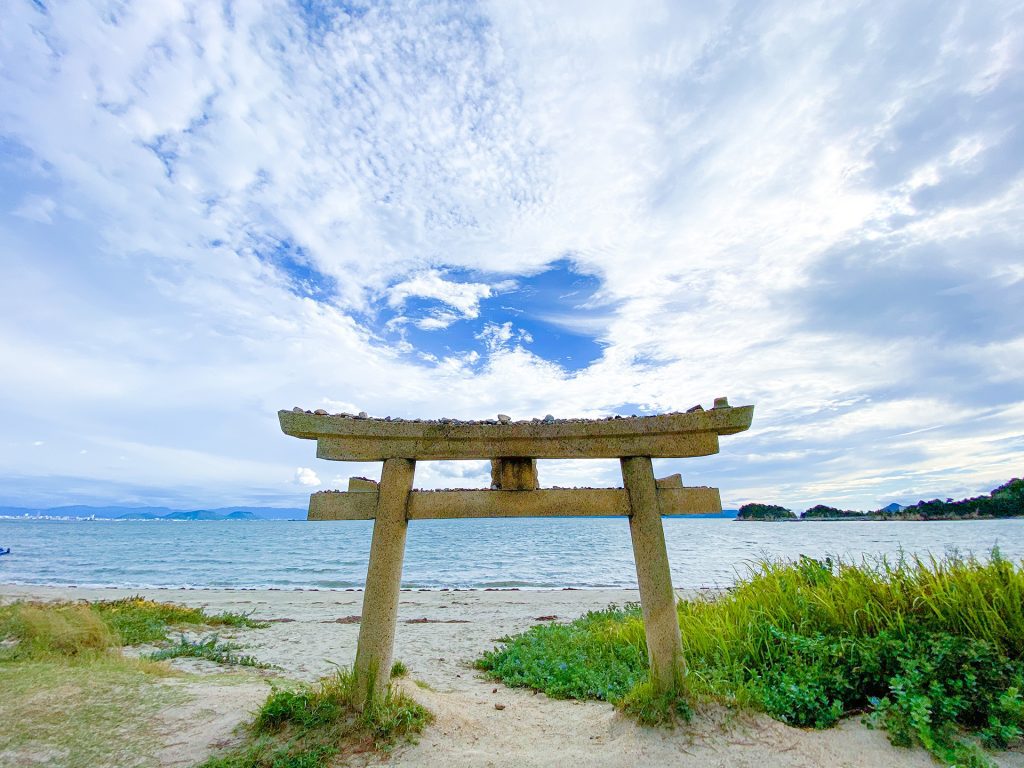 作中では成瀬神社が舞台になっていますが、成瀬神社のモデルとなった「山神社」の鳥居からは海が見えないので違うでしょう。