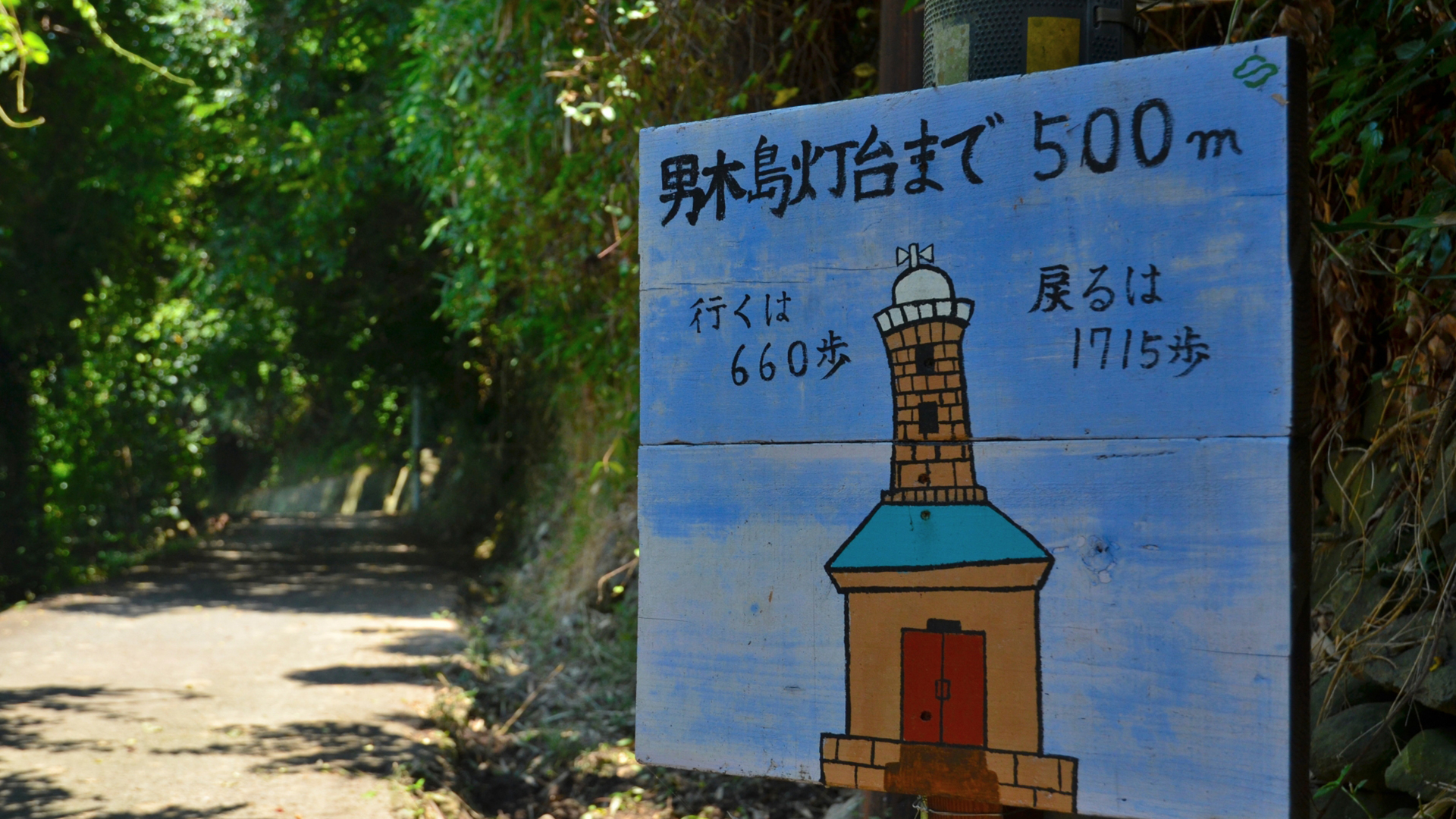 灯台までの道のりは短いように感じますが、夏場の徒歩移動は結構過酷です。休憩ポイントも給水スポットもなく、到着するまでひたすら歩きます。